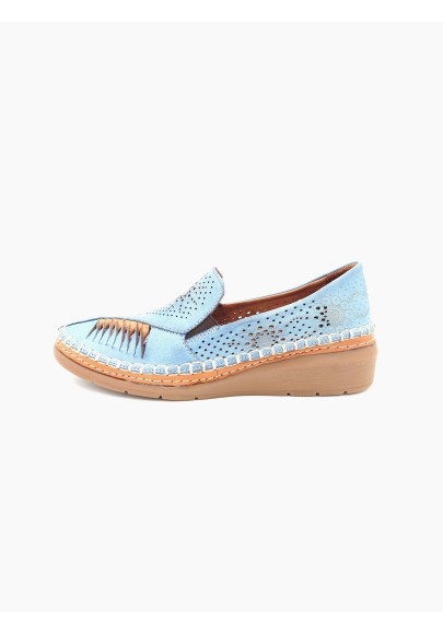 Mocassins compensés en cuir souple Bleu - HARLEY - Madory
