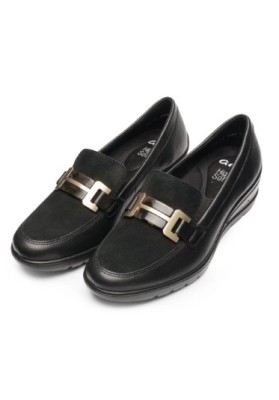 Mocassins confort à talons compensés en cuir Noir - 12-50609-01 Ara